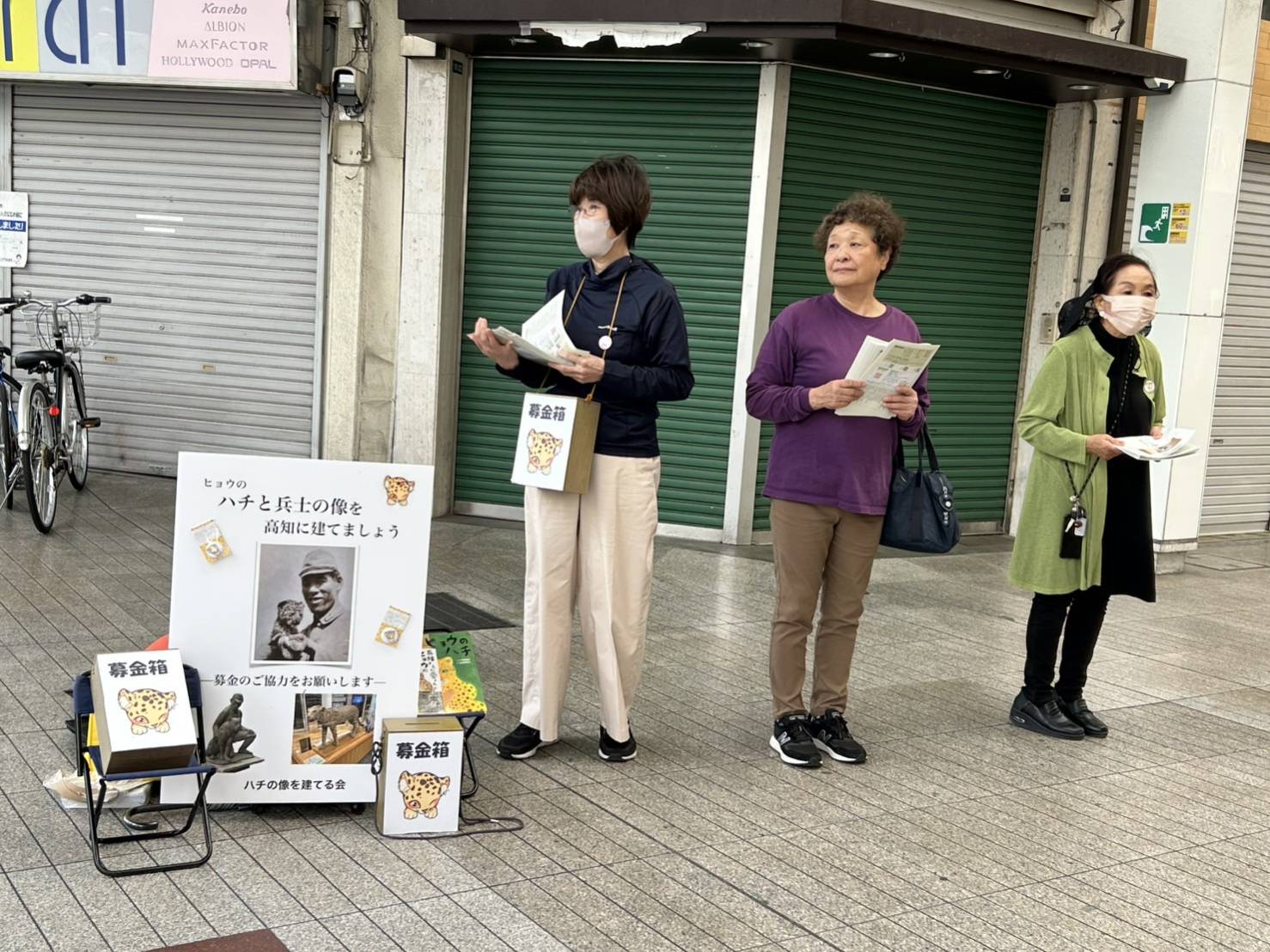 ハチの像を建てる会では多くの市民の方々に募金を呼びかけていますが、まだまだアピール不足だとして、街頭募金活動も行いました。