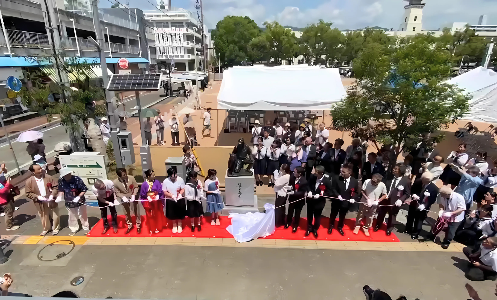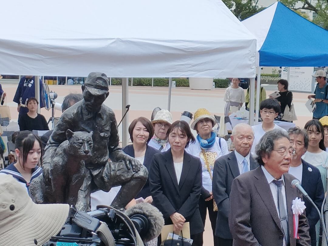 ハチの命日の前日の8月17日に像の除幕式が行われ、命の大切さや平和を希求する「ハチと兵士」の完成を祝った。