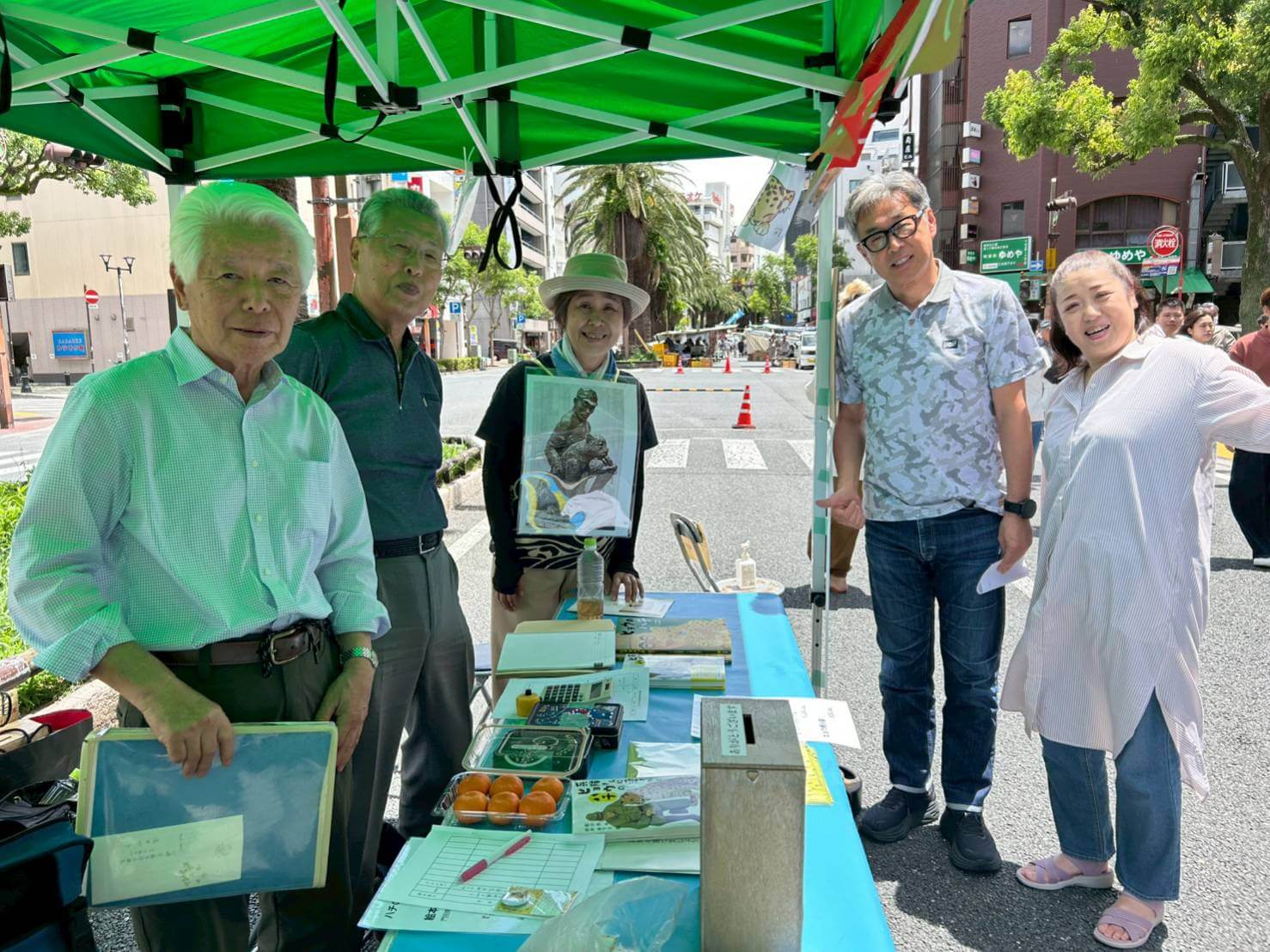 高知市の街路市として長い歴史と規模を誇る日曜市において、「ハチと兵士の像」の募金を呼びかけました。